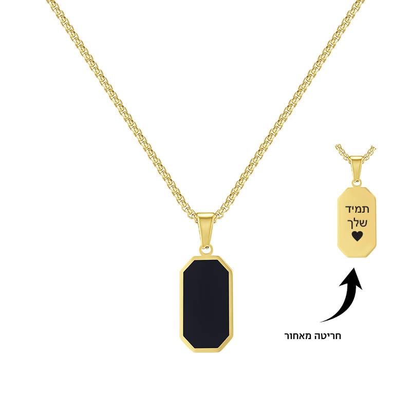 שרשרת לגבר תליון שחור עם חריטה