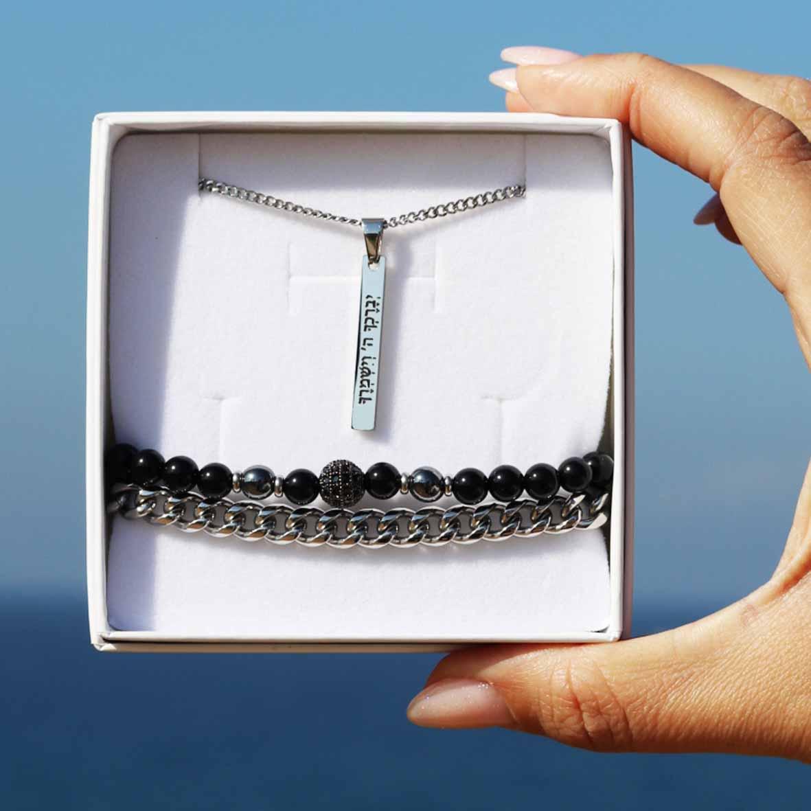 עמוד הביתתכשיטים לגברסטים לגבר סט שרשרת יברכך ה' וצמידים לגבר