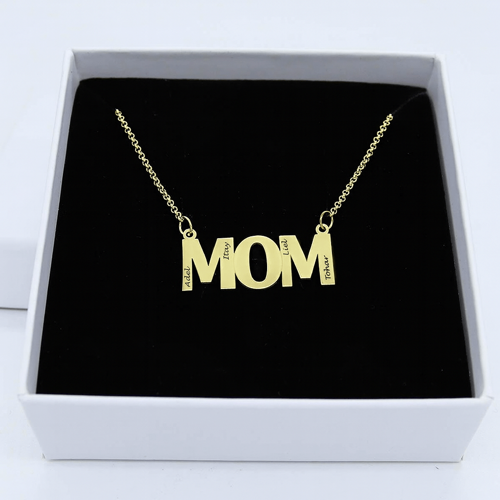 עמוד הביתתכשיטים לאישהשרשראות לנשים שרשרת MOM עם חריטת שמות ילדים